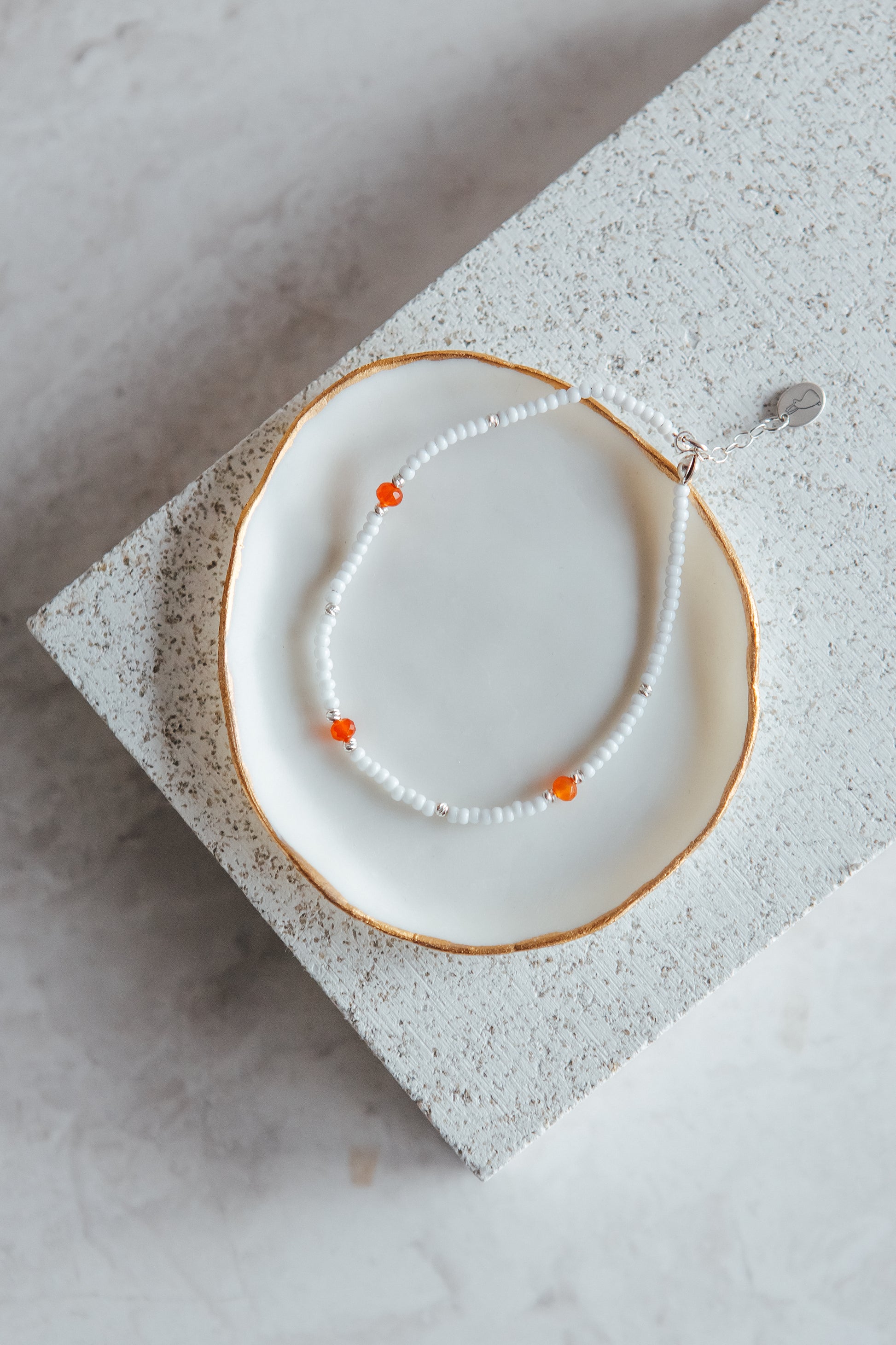 - Sterling silver findings and a hand-stamped branded tag